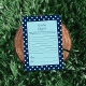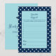 Profitez de jouer à ce jeu de baby shower Guess That Baby Food sur un arrière - plan bleu marine avec des pois blancs. Modèles pour l'avant, avec un bébé arc en bleu marine avec arrière - plan turquoise. Correspond à la collection Bleu de la Marine de Charme et Turquoise.