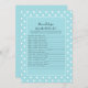 Profitez de jouer à ce jeu de baby shower Who Knows Dad Best sur un arrière - plan turquoise avec des pois blancs. Modèles pour l'avant, avec un bébé arc en turquoise. Correspond à la collection Vintage Charm Turquoise.