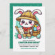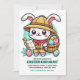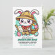 Invitez vos amis et votre famille à une chasse aux œufs de Pâques inoubliable avec cette adorable invitation personnalisée ! Avec un lapin explorateur mignon portant un panier d'œufs colorés et une carte au trésor, ce design est parfait pour ajouter une touche ludique à n'importe quelle fête printanière.