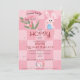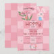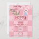 Pour votre fête de célébration de Pâques, choisissez ce modèle d'invitation pour une chasse aux œufs de Pâques avec un brunch et un lapin en aquarelle rose mignon, avec des gribouillages dessinés à la main tendance sur un fond damier rose à deux tons.