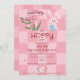 Pour votre fête de célébration de Pâques, choisissez ce modèle d'invitation de Lapin à l'aquarelle rose mignon pour une chasse aux œufs de Pâques, avec des gribouillages dessinés à la main tendance sur un fond damier rose à deux tons.