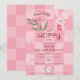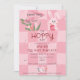 Pour votre fête de célébration de Pâques, choisissez ce modèle d'invitation pour une chasse aux œufs de Pâques avec un brunch, Lapin à l'aquarelle rose mignon, avec des gribouillages dessinés à la main tendance sur un fond damier rose à deux tons.