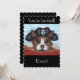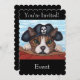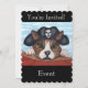 Cette invitation à la fête est noire avec un mignon chat brun aux grands yeux verts portant un casquette pirate noir au crâne surplombant le bord d'un bateau rouge sous un ciel bleu. Customisez vos informations à l'avant et à l'arrière avec les modèles.