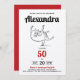 Invitation Chat amusant rouge noir blanc danse croquis 50e an