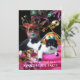 INVITATION CHAT AVEC CASQUETTE HARLEQUIN ET MASQUERADE DE FÊT