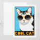 Cette illustration de dessin animé simple et ludique présente un chat avec le texte "CAT COOL" affiché en gras et en orange en bas. Placés contre un arrière - plan bleu, les oreilles du chat sont clairement visibles en haut de l'image, bien que la partie centrale du visage soit partiellement floue. Le design lumineux et amusant capte une ambiance fantaisiste et légère, parfaite pour les amateurs d'art gai et décalé.