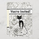 ~Personnalisé Cute Chat Noir avec un Charmant Arrière - plan de Jardin Noir et Blanc Invitation pour les filles.