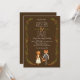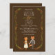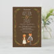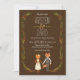 Cette charmante collection de faire-part de mariage est composée d'un couple de chats hanche et de renards entourés d'un cadre de feuilles forestiers dessinés à la main dans un arrangement de gerbe.