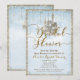 Cartons d'invitation château de conte de fées pailleté or mariage bleu