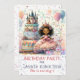 Créée dans une atmosphère abstraite fantaisiste et enchanteresse, cette carte d'invitation personnalisée mettant en vedette une jolie princesse afro-américaine avec une couronne, célébrant son anniversaire avec un gâteau de château, éclaboussure de confettis dans de belles couleurs pastel. .