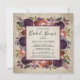Des invitations à la douche nuptiale prune & butterum avec un arrière - plan en pierre de château rustique, des plumes de sauce, des fleurs de rose et de pivoine, et un modèle de texte de fête nuptiale moderne qui est facile à personnaliser.