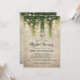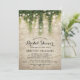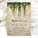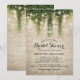 Cartes d'invitation de douche de mariée de conte de fées magique avec un fond de mur de briques de pierre rustique, vigne de lierre verte avec des lumières scintillantes, et un modèle d'invitation de mariage.