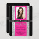 Sweet 16 invitation à la fête avec un joli rose chaud sur un élégant arrière - plan de parties scintillant noir et argent avec belle arc noir brillant. Cette belle invitation de fête d'anniversaire en sweet sixteen de parties scintillant rose chaud est facilement customisée avec vos photos et détails de l'événement dans le style et la couleur de police, et le libellé de votre choix. Vous pouvez également changer la couleur arrière - plan sur cet élégant faire-part de graduation rose chaud.