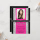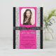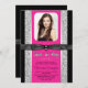Sweet 16 invitation à la fête avec un joli rose chaud sur un élégant arrière - plan de parties scintillant noir et argent avec belle arc noir brillant. Cette belle invitation de fête d'anniversaire en sweet sixteen de parties scintillant rose chaud est facilement customisée avec vos photos et détails de l'événement dans le style et la couleur de police, et le libellé de votre choix. Vous pouvez également changer la couleur arrière - plan sur cet élégant faire-part de graduation rose chaud.