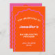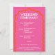Bachelorette orange et rose chaud invitation week-end avec itinéraire week-end. Cette invitation à la fête de bachelorette comporte une arche ondulée et une police rétro blanche / rose vif. Cliquez sur personnaliser pour ajouter vos détails ou modifier à l'aide de l'outil de conception pour les modifier plus en détail.