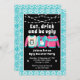 Cette invitation mignonne et amusante présente des chandails laides sur un arrière - plan de l'île bleu de la foire d'hiver. Les flocons de neige et les feux de livres apportent une touche festive. Le texte combine des polices audacieuses et sans serif pour un look élégant et moderne. C'est parfait pour une fête en pull moche de Noël.