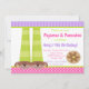 Chaussons de chien Pajamas et Pancakes Party Invitation pour cette occasion spéciale. L'arrière - plan a des rayures violettes et des pois roses. Les mots peuvent être changés selon vos besoins. Illustrations de JW