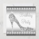 Chaussures à talons hauts en diamant élégant noir et blanc invitations pour une fête d'anniversaire. Cette belle invitation de fête d'anniversaire avec chaussure à talons hauts en diamant noir et blanc est parfaite pour une fête d'anniversaire pour les seize ans, Quinceanera, fille et femme pour tout anniversaire. Ajoutez vos détails à l'avant et à l'arrière en ajoutant simplement vos détails d'événement, style de police, taille et couleur de police, et libellé.