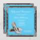 Elégant bleu turquoise avec parties scintillant blanche argent talon haute chaussures femme's anniversaire invitation de fête. Cette belle invitation turquoise de fête d'anniversaire bleu et noir est facilement customisée pour votre événement en choisissant simplement le bouton "Customisez!" pour commencer à ajouter vos détails d'événement, le style de police, la taille et la couleur de police et le libellé. Veuillez noter que tous les autocollants, cartes et modèles d'invitation que vous trouverez sur Zazzle sont des graphiques imprimés sans bijoux, arcs, surélevés, gaufrés, ni pièces ou pièces ajoutées.