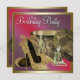 Elégant rouge et or haute chaussures talon d'anniversaire modèle d'invitation fête d'anniversaire. Cette belle invitation à la fête des chaussures à talon rouge, rose et or est facilement customisée pour votre événement en cliquant simplement sur le bouton "Customisez!" pour commencer à ajouter vos détails d'événement, le style de police, la taille et la couleur de police et le libellé. Veuillez noter que tous les autocollants, cartes et modèles d'invitation que vous trouverez sur Zazzle sont des graphiques imprimés sans bijoux, arcs, surélevés, gaufrés, ni pièces ou pièces ajoutées.