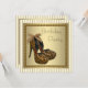 Cartons d'invitation élégants à talons hauts dorés à motif léopard pour fête d'anniversaire. Cette belle invitation d'anniversaire noire et dorée à motif léopard est facilement personnalisable pour votre événement en cliquant simplement sur le bouton "Personnalisez-la !" pour commencer à ajouter les détails de votre événement, le style de police, la taille et la couleur de la police, ainsi que le libellé. Veuillez noter que toutes les conceptions de cartes et d'invitations que vous trouverez sur Zazzle sont des graphiques imprimés sans véritables bijoux, rubans, parties ou pièces en relief, en creux ou ajoutées.