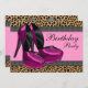 Chaussures à talons hauts rose chaud et invitation de fête d'anniversaire rose léopard. Cette invitation de fête d'anniversaire rose léopard fonctionne bien pour une fête de bachelorette, une douche de mariée, l'anniversaire d'une femme de 21 ans, 25 ans, 30 ans, 35 ans, 40 ans, 45 ans, 50 ans, 55 ans, 60 ans, 65 ans et tout autre nombre. Cette invitation d'anniversaire rose léopard élégante conviendrait parfaitement comme invitation d'anniversaire pour un sweet sixteen ou une invitation de Quinceanera et est facilement personnalisable pour votre événement en choisissant simplement le bouton "Personnalisez-le !" pour commencer à ajouter les détails de votre événement, le style de police, la taille et la couleur de la police, ainsi que le libellé. Veuillez noter que tous les décorations de gâteaux,