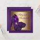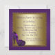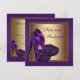 Invitation modèle élégant violet et or pour une fête d'anniversaire. Cette belle invitation pour une fête d'anniversaire représentant une chaussure à talon haut noire, violette et or est facilement personnalisable pour votre événement en cliquant simplement sur le bouton "Personnalisez-le !" pour commencer à ajouter vos détails d'événement, style de police, taille et couleur de police, et libellé. Veuillez noter que tous les autocollants, cartes et modèles d'invitation que vous trouverez sur Zazzle sont des graphiques imprimés sans véritables bijoux, rubans, reliefs, gaufrures ou pièces ajoutées.