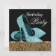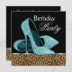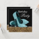 Carton d'invitation pour une fête d'anniversaire avec chaussure à talon haut pailletée et léopard bleu sarcelle élégant. Ce magnifique modèle de carton d'invitation pour une fête d'anniversaire avec léopard bleu sarcelle est facilement personnalisable pour votre événement en cliquant simplement sur le bouton "Personnalisez-le !" pour commencer à ajouter les détails de votre événement, le style, la taille et la couleur de la police, ainsi que le libellé. Veuillez noter que tous les autocollants, cartons et modèles d'invitation que vous trouverez sur Zazzle sont des graphiques imprimés sans véritables bijoux, rubans, reliefs, gaufrures ou pièces ajoutées.