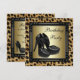 Chaussures à talons hauts noires élégantes et modèle d'invitation à une fête d'anniversaire à motif léopard. Cette belle invitation à talons hauts noirs pour une fête d'anniversaire est facilement personnalisable pour votre événement en choisissant simplement le bouton "Personnalisez-le !" pour commencer à ajouter vos détails d'événement, style de police, taille et couleur de police, et libellé. Veuillez noter que tous les autocollants, cartes et modèles d'invitation que vous trouverez sur Zazzle sont des graphiques imprimés sans véritables bijoux, rubans, parties ou pièces surélevées, embossées ou ajoutées.