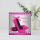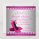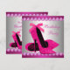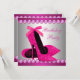 Élégantes invitations de fête d'anniversaire pour filles ou femmes avec des perles rose chaud et fuchsia et des chaussures à talons hauts. Ajoutez les détails de votre fête à l'avant et à l'arrière, et vous pouvez choisir votre style de police et la couleur de la police.