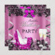 Fête d'anniversaire Champagne, chaussures à talons hauts en laçage rose et paillettes noires, Invitation pour toutes occasions, enterrement de vie de jeune fille, soirée entre filles, fête de poulettes. Personnalisez avec vos propres détails et âge. Modèle pour fête d'anniversaire, Sweet 16, 16 ans, Quinceanera 15 ans, 18 ans, 20 ans, 21 ans, 30 ans, 40 ans, 50 ans, 60 ans, 70 ans, 80 ans, 90 ans, 100 ans, Produit fabuleux pour femmes adultes, adolescentes, Zizzago a créé ce design. NOTEZ que toutes les images sont plates ! Elles ne contiennent pas de véritables paillettes, diamants, bijoux ou vrais nœuds !!