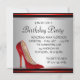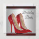 Cartes d'invitation élégantes en argent, noir et rouge à talons hauts pour une fête d'anniversaire. Cette belle invitation d'anniversaire pour femme en rouge et noir est facilement personnalisable pour votre événement en cliquant simplement sur le bouton "Personnalisez-la !" pour commencer à ajouter vos détails d'événement, style de police, taille et couleur de police, ainsi que le libellé. Veuillez noter que tous les autocollants, cartes et modèles d'invitation que vous trouverez sur Zazzle sont des graphiques imprimés sans véritables bijoux, rubans, reliefs, gaufrages ou pièces ajoutées.