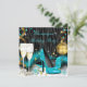 Soirée de fête de Champagne. Chaussures à talons hauts sarcelle bleue pailletées aqua. Étincelles festives et banderoles dorées. Superbes plumes noires et blanches pour soirée d'entreprise noire et or. Élégante soirée de Noël. Cartes d'invitation pour soirée. Cartes d'invitation élégantes et chic pour toutes occasions. Modèle d'invitation pour soirée à personnaliser avec vos propres détails.