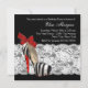 Invitation élégante de fête du zèbre rouge. Cette belle invitation de fête du zèbre rouge présente un fond en dentelle noir et blanc, une chaussure à talon haut en forme de sabot de zèbre noir, un flacon de parfum et un rouge à lèvres rouge. Cette invitation élégante et amusante de fête d'anniversaire chaussure à talon haut zèbre rouge est facilement personnalisable pour votre événement en cliquant simplement sur le bouton "Personnalisez-le !" pour commencer à ajouter les détails de votre événement, le style de police, la taille et la couleur de la police, ainsi que le libellé. Veuillez noter que toutes les conceptions de cartes et d'invitations que vous trouverez sur Zazzle sont des graphiques imprimés sans véritables bijoux, rubans, reliefs, gaufrages ou pièces ou éléments ajoutés.