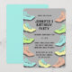 Ces invitations personnalisables sont parfaites pour les randonneurs et les amoureux de la nature. Elles présentent des illustrations de chaussures de randonnée de couleurs pastel vives sur fond gris et sont prêtes à être personnalisées avec tous les détails de votre fête en lettrage noir.