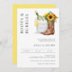 Cartes d'invitation "Boots and Bubbly" pour la fête de couples : Préparez-vous à lever les talons et à célébrer le couple heureux avec ces invitations amusantes et festives. Parfaites pour une fête de couples "Boots and Bubbly", ces invitations présentent une paire de bottes de cowboy avec un verre de champagne sur le dessus, sur un fond en bois rustique. Le texte est écrit dans une police ludique, ce qui le rend facile à lire et adapté au thème. L'invitation comprend tous les détails importants de l'événement, tels que la date, l'heure, le lieu et les informations sur la liste de mariage. Avec son design unique et amusant, les invitations "Boots and Bubbly" sont le moyen idéal pour donner le ton à une fête de couples inoubliable.