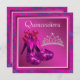 Elégant rose chaud talon chaussures et tiara fuchsia Quinceanera modèle d'invitation. Cette belle invitation de fête d'anniversaire violet et fuchsia est facilement customisée pour votre événement en choisissant simplement le bouton "Customisez!" pour commencer à ajouter vos détails d'événement, le style de police, la taille et la couleur de police et le libellé. Veuillez noter que tous les autocollants, cartes et modèles d'invitation que vous trouverez sur Zazzle sont des graphiques imprimés sans bijoux, arcs, surélevés, gaufrés, ni pièces ou pièces ajoutées.