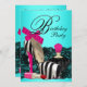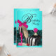 Dentelle élégante, flacon de parfum noir et rose chaud, rouge à lèvres et turquoise bleu et rose zèbre haute chaussure invitation fête d'anniversaire. Cette jolie invitation de fête d'anniversaire rose vif est facilement customisée pour votre événement en ajoutant les détails de votre événement, le style de police, la taille et la couleur de police et le libellé.