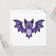 Cette chauve-souris stylisée possède des ailes symétriques et une coloration violette vibrante avec des yeux jaunes frappants qui vous feront ressortir dans toute foule. Les lignes épurées et les couleurs plates créent une vision moderne de cette créature d'Halloween classique. Parfait pour les noctambules et les amateurs d'Halloween !