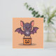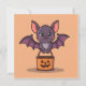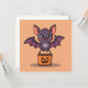 Le collectionneur de bonbons le plus mignon. Cette invitation est parfaite pour les petits monstres et les adultes, avec une chauve-souris amicale et un seau de citrouille souriante. Une invitation charmante et amusante pour les fêtes d'Halloween !