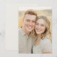 This wedding invitation features a warm, inviting design with two individuals smiling closely together, capturing a moment of genuine happiness and connection. The layout is centered and symmetrical, emphasizing the subjects against a soft, golden-hued background that enhances the cheerful mood. The color palette includes natural tones like beige and light gold, creating a harmonious and elegant atmosphere. The photographic art technique highlights realistic details and textures, ensuring an authentic representation of the joyful occasion. Perfect for celebrating love and unity, this design conveys warmth and positivity through its simple yet effective visual elements.