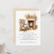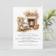 Invitations chaleureuses et accueillantes à dîner Friendsgiving avec une aquarelle illustration d'une cheminée décorée de feuillage d'automne et de citrouilles. Le côté inverse est une couleur blanc cassé chaud. (Les couleurs Arrière - plans peuvent être modifiées à l'aide de l'outil de conception).