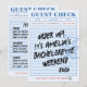 La suite "Guest Check Bachelorette Weekend" est une collection audacieuse et ludique inspirée par des vibes de diners rétro et des divertissements nocturnes. Conçue pour ressembler à un chèque classique, cette suite échange la formalité pour la personnalité avec des lettres manuscrites tape-à-l'oeil et des détails de style restaurant.
