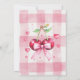 Editable cherry bow birthday invitation. Features a watercolor cherry with a pink bow, and a gingham pink and white background.