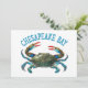 Un design vintage avec un crabe bleu avec la typographie Chesapeake Bay.
