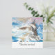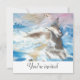 Une belle et élégante peinture d'un cheval blanc au milieu des vagues de la mer dans les tons de bleu avec un ciel rose. de ma collection d'animaux.