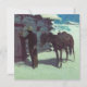 Carte représentant le tableau à l'huile de Frederic Remington intitulé Le Voyageur en Retard (1906). Un cowboy frappe à la porte d'une cabane au milieu d'une neige hivernale. Il tient les rênes d'un cheval brun à ses côtés. Un cadeau parfait pour les amateurs de chevaux et de l'Ouest américain.