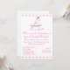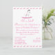 L'invitation à la douche Rocking Horse rose et blanc présente l'adorable image d'un cheval rosé et blanc rocking. Des arcs roses bordent le haut et le bas du design, et l'expression "It's a Girl !" est affichée juste en dessous de l'image en lettres rose vif. Votre texte apparaît ci-dessous dans la même lettrage. Dans le coin inférieur gauche, vos informations sont présentées dans un imprimé rose clair. Les informations RSVP s'affichent à gauche. Tout le texte est personnalisable. Reverse side permet de faire des commentaires spéciaux, des informations sur le registre, des rappels de thème, etc. Conçu pour accompagner le thème du Cheval Rocheux Rose et Blanc.