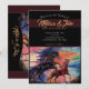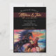 Peinture romantique de chevaux courant sur une plage au coucher du soleil, parfaite pour les invitations de mariage élégantes ! Personnalisez la vôtre pour un touche élégante et personnelle à votre événement spécial !