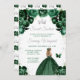 Cette invitation d'anniversaire élégante et glamour au sweet sixteen présente une belle princesse aux cheveux blonds dans une robe de boule vert foncé. Le texte combine écriture manuscrite et polices sans serif modernes pour un look élégant et sophistiqué. Les arrangements floraux, papillons et confettis argentés créent un mélange parfait de rustique et de chic. Graphiques par www.etsy.com/uk/shop/SunflowerDayLove